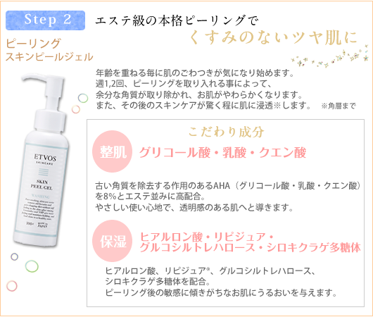 ●スキンピールジェル:水、グリセリン、プロパンジオール、グリコール酸、クエン酸、ポリアクリレートクロスポリマー-6、水酸化Na、トレハロース、乳酸、グリチルリチン酸2K、サリチル酸、ヒアルロン酸Na、グリコシルトレハロース、加水分解水添デンプン、ポリクオタニウム-51、シロキクラゲ多糖体、ビオサッカリドガム-1、ヨーグルト液(牛乳)、BG、キサンタンガム、レモン果皮油、グレープフルーツ果皮油、エチルヘキシルグリセリン、フェノキシエタノール